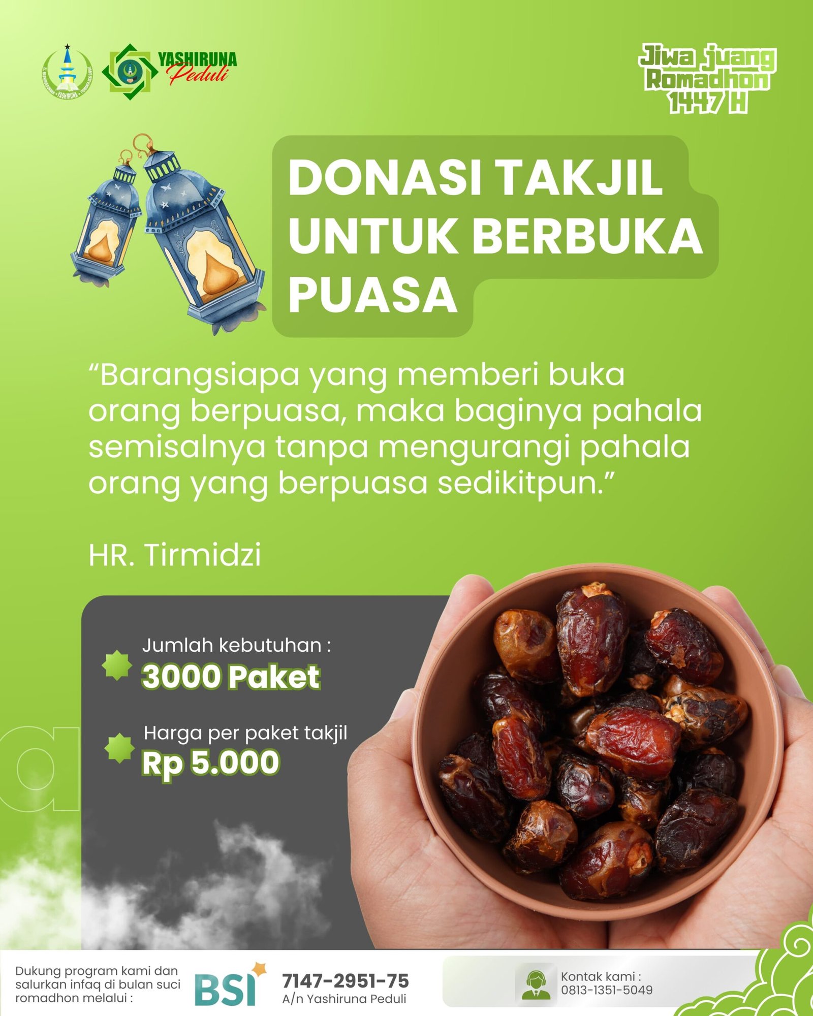 Yashiruna Peduli adalah lembaga sosial yang bergerak dalam pemberdayaan umat melalui program bantuan pendidikan, sosial, kesehatan, dan dakwah. Kami hadir sebagai jembatan kebaikan antara donatur dan masyarakat yang membutuhkan, dengan prinsip amanah, transparan, dan berorientasi pada kebermanfaatan jangka panjang. Yashiruna Peduli berkomitmen untuk menghadirkan solusi nyata bagi umat melalui program yang maslahat, tepat sasaran, dan dapat dirasakan langsung oleh para penerima manfaat.